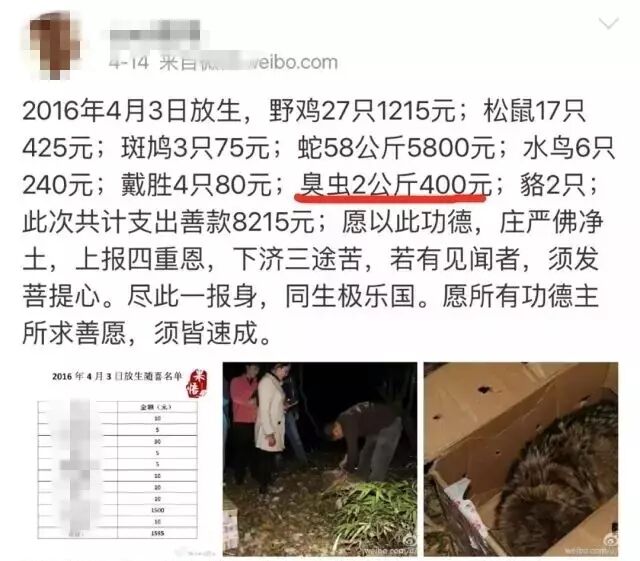 讲一个故事。一个人为了建立“功德”,在村里放生了一只狐狸。结果,村民养的鸡都被这狐狸吃了... 可如今这样荒唐的“放生”故事不仅屡见报端,甚至已经发展到严重威胁地区生态安全的程度.... 今天要说的这个事情,就是一起已经在云南持续了一段时间的不科学“放生”事件——而如果再不制止,云南就要被毁了! 故事,始于某位微博博主。搜索记录显示,至少从2012年开始,这位博主就开始在云南当地参与各种放生活动。而从2014年开始,这位博主更是开始组织各种大规模的放生活动。 而在她“放生”的物种中,除了有福寿螺、克氏原螯虾、佛罗里达鳖这些从来在云南就没有过的物种之外,还有过58公斤的蛇和2公斤的臭虫.... 虽然说众生平等,可是,放臭虫……许多网友表示接受不了。 于是,这位博主的行为很快就遭到了微博上数万网友们几乎一边倒的谴责。而专业级别的@博物杂志 更是直接指出,其实放臭虫还并不是最出格的事情,更大的问题是,将很多根本不属于云南的外来物种,一股脑地都“扔”在了云南本地【特有的生态系统】中,这会严重的破坏云南当地生物的多样性,令很多当地独有的珍惜物种被外来物种所灭绝,毁掉云南的生态!