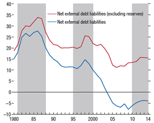 图5. 新兴市场经济体外部资产负债表,1980-2014