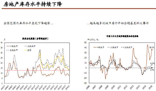 这是我们从各个城市统计出来的可售住房面积。有个红线叫12个月,是指库存低于12个月就开始涨价,如果远远超过12个月就要降价。一线城市个位数库存在半年以上,二线城市在12个月左右,三线城市15个月左右。看一下这边的价格,去年一线城市北、上、广、深当然是疯涨,今年只剩下三、四个月的库存。二线城市今年三月份已经到10了。三线城市也应该是正增长了。