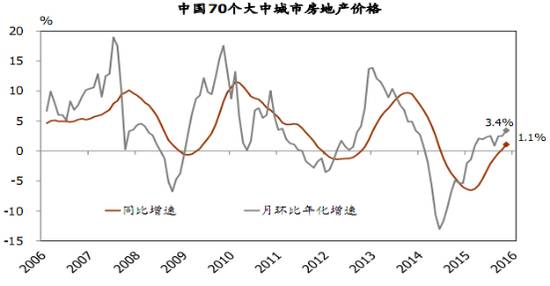 这是2007年以来的数据。一、二、三线城市的走势有区别吗?可能水平有区别,一线涨的高点,二线涨6%,但是波动方向没有区别。
