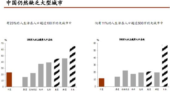 人口和土地的禀赋来讲,一百万以上人口的城市,有很多数字中国应该落在美国和日本之间。如果做的好我们会像美国,如果做的不好则更像日本。比如在人口聚集度上不像日本那么密,但是一定比美国密。所以,一百万以上人口的城市是美国的一半,日本的三分之一。五百万以上人口的城市还是美国的一半,是日本的四分之一。