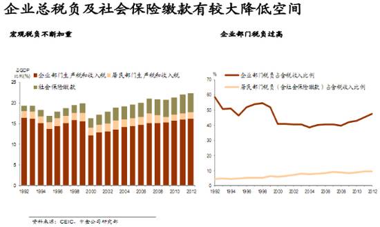 为什么大家对“五险一金”往下降的呼声这么大?因为如果把“五险一金”加进去,中国企业部门的税负达到50%-60%。现在“五险一金”已经成了主要靠人工的中小新型服务型企业的主要成本。很多税被免了,但是你要正式雇佣一个员工,就有必须要上“五险一金”,我们的缴费比例非常高。