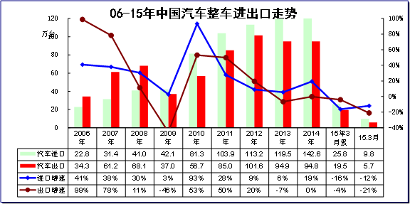 统计显示,近几年,中国汽车出口出现持续的增速下滑局面,06年时的增速在100%左右,随后到11年下滑到50%左右,13年已经是负增长局面,14年1-6月仍延续负增长局面,但13下半年负增长,导致14年增长的基数偏低。