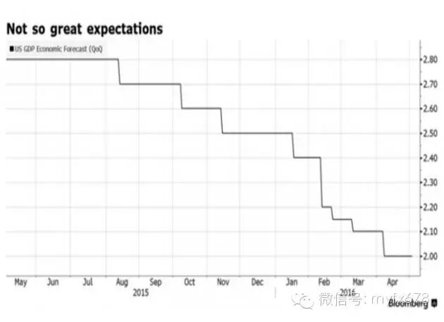 经济学家是稳定逐步地采取此种思考方式的。在过去8个月,经济学家一步一步地下调了对美国经济增长的预期,从之前的最高预测增长2.8%下调至目前的2%;这不能仅仅归咎于季节性影响。