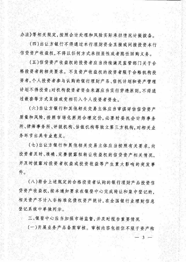 (4)不良资产的收益权不得转让给个人投资者,包括个人投资者购买的理财产品,即叫停了以理财资金对接不良的做法。