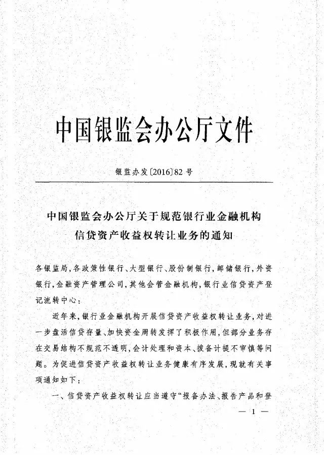 附:银监办发[2016]82号文:关于规范银行业金融机构信贷资产收益权转让业务的通知