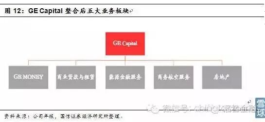 GECapital是GE旗下专门从事金融服务的部门,经过不断的调整整合,把散布在其他业务板块中的金融业务基本都聚集到一个单独的金融资本板块。整合完成后,GECapital旗下共包括五大业务模块:GE MONEY、商业贷款与租赁、能源金融服务、商务航空服务、房地产。