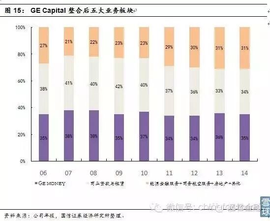 经过多年在供应链金融中的积累沉淀,GE Capital已经由单纯服务产品销售的协作部门转变为专业的金融服务部门,并且在集团中具有重要地位。GE Capital收入占比一直在30%上下,是GE重要的利润来源,根据2014年报,GECapital的利润占比达到了37.8%。