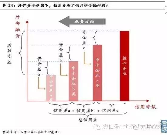 外部资金运用本质仍是核心企业与中小企业的信用差。供应链金融较为保守的模式,即核心企业利用自身信用优势获得外部资金,同时基于自身对中小企业业务往来形成的风控优势,针对中小企业进行资金融通业务。核心企业和中小企业在外部融资能力上的差别是信用的差别,供应链金融存在的基础也即企业之间的信用极差。