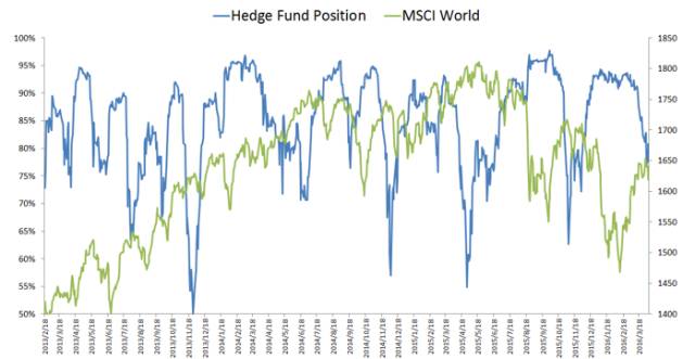 图9是对冲基金的股票仓位,根据历史经验,对冲基金这种smart money对市场有一定领先性。例如去年12月开始的这一波sell off,对冲基金似乎有所准备,在11月底就把股票仓位就降到了比较低的水平。