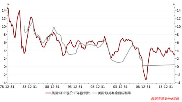 再看债券,潜在增速和人口结构决定经济体的资产回报率和资金供求关系,进而决定长期均衡利率。首先,潜在名义增速决定资本回报率,进而影响短端利率,很直观。图2可见,美国短端利率和名义增速的关系。