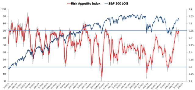 图8是我构建的风险偏好指数,指数高于70代表市场极度乐观,price in了太多好消息,一旦有一些坏消息就会导致市场大幅sell off。同理,低于20则表示市场太悲观,例如今年2月风险偏好便达到了极度悲观的水平,发出抄底的信号。
