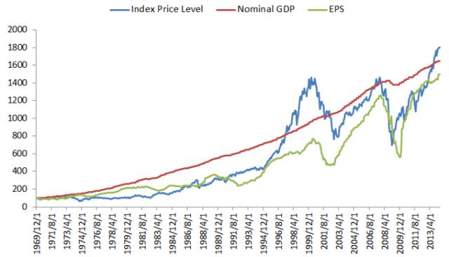 图1:发达国家股价、盈利和名义GDP长期走势一致