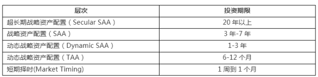 资产配置核心的变量是预期收益,高配高预期收益资产,低配低预期收益资产是很自然的选择。由于在不同的投资期限内,决定资产回报的主要因素是不同的,因此资产配置一般按投资期限划分为几个层次。本文也将根据投资期限由长到短,梳理资产配置这几个层次。