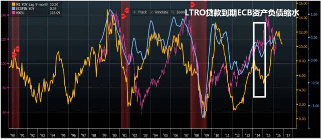 举一个欧股的例子,2014年下半年欧洲经济增速出现下滑迹象,大家担心是不是欧洲又要进入衰退了,股市也大幅回调。欧洲经济高度依赖货币宽松,因此M1是欧元区经济最好的领先指标。当时由于欧洲银行提前偿还LTRO贷款,导致欧央行B/S缩水,货币增速下降很厉害,造成经济下行。但是,我们分析后认为,银行的贷款已经换得七七八八了,M1增速已经触底反弹,经济也将迎来反弹窗口,欧股是很好的进入时点。当然后来ECB实施了QE,股票迎来一波大涨,但我们心里很清楚,QE or not,股市都会迎来反弹,QE只是多浇了一点油而已。