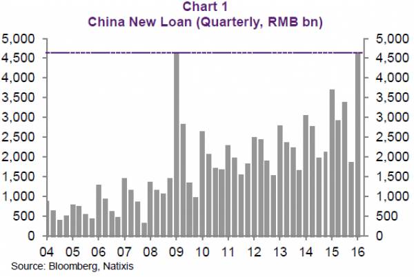 1,中国今年一季度的新增人民币信贷投放达到4.61万亿元,超过了2008年-2009年金融危机期间的最高水平,此前的高点是2009年第一季度的4.59万亿元。