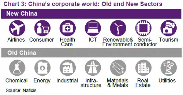 2,不同于传统的国企/民企的分类,Natixis将中国企业债务分为新部门和旧部门,新部门包括航空、消费、医疗健康、可再生能源、旅游等等,旧部门包括化工、能源、基建、材料金属、房地产等。
