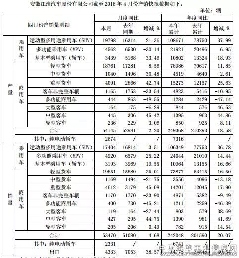 另一个下滑的企业江淮汽车应该是比较出乎意料的,总体上来说,得益SUV的高速增长,江淮汽车的乘用车板块近一年来一直保持较好的发展态势,4月其销量下滑的重要原因就是SUV的增速放缓。