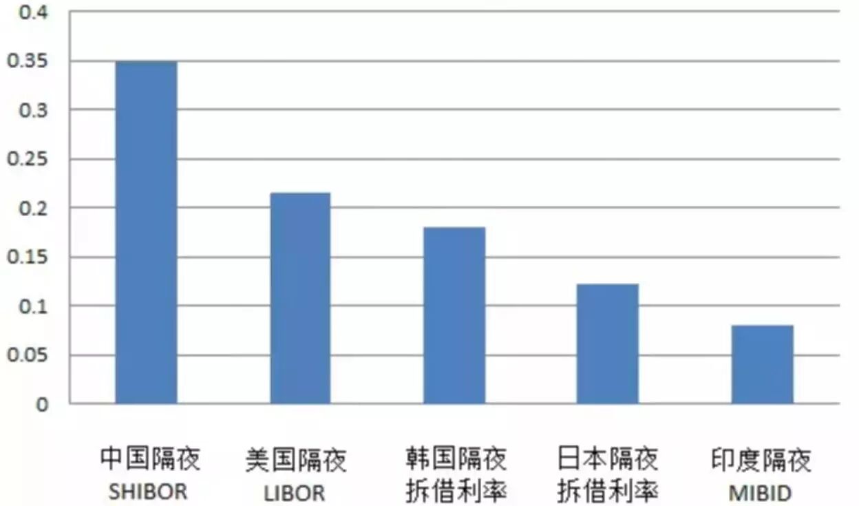 波动率定义:短期利率的变异系数(日均利率标准差除以平均利率),该计算方法所得波动率更具有跨国可比性。