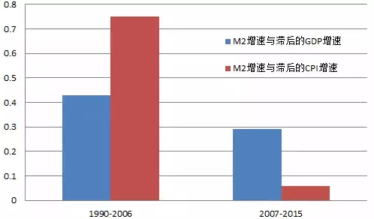 我们的估算表明,在1990-2006年间,M2增速与名义GDP增速的相关性(滞后一年)为0.43,在2007-2015年间该相关系数下降至0.29;类似地,在1990-2006年间,M2增速与CPI增速的相关性(滞后一年)为0.75,而2007-2015年间该相关性降低为0.06。这些相关性的下降,使得M2继续作为货币政策主要中介目标的合理性受到挑战。