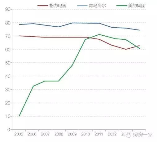 巨额无息负债受益于格力独特的经销模式。格力的区域销售公司模式,有三个特点:在业务上,各区域性销售公司是总部的一个营销部门,并受总部的业务管理;在形式上,区域性销售公司是独立法人,是一个产权非常明晰的企业,有了良性的产权激励机制;在分工上,总部给销售公司提供品牌和市场,并实施监督,其他的一律下放给销售公司,销售公司有制定价格和政策的权力,有很大的自主权。