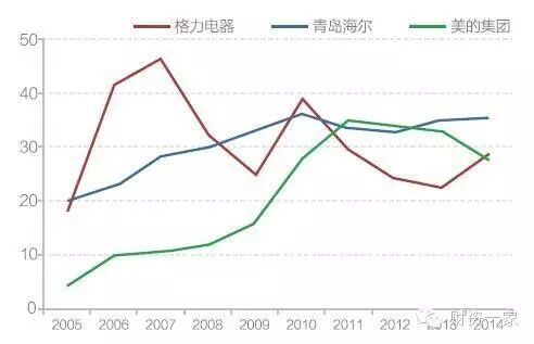 2014年年报显示,格力的净资产收益率(ROE)高达35.23%,相较于美的电器的29.49%、海尔电器的27.58%(图2),格力如此之高的ROE引起了业界广泛的关注,在家电行业利润率趋平的背景下,格力电器的盈利能力为何强于其他企业?其独特的经销模式发挥着不可或缺的作用。