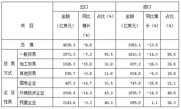一季度,中国一般贸易进出口4482.6亿美元,同比下降10.4%,占进出口总额的55.9%,较2015年同期提高0.6个百分点。加工贸易进出口2365.5亿美元,同比下降16.8%,占进出口总额的29.5%,较2015年同期下降1.9个百分点。