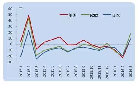 一季度,中国铜矿砂、天然气、原油和铁矿石等商品进口量显著增加,同比分别增长33.0%、25.9%、13.4%和6.5%,而进口价格分别下跌27.2%、35.9%、40.9%和34.8%。来源:商务部《中国对外贸易形势报告(2016年春季)》