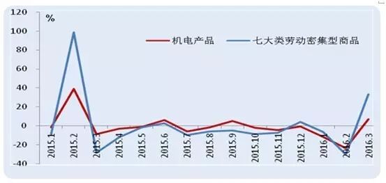 图3 2015年以来机电产品和劳动密集型产品月度出口增速