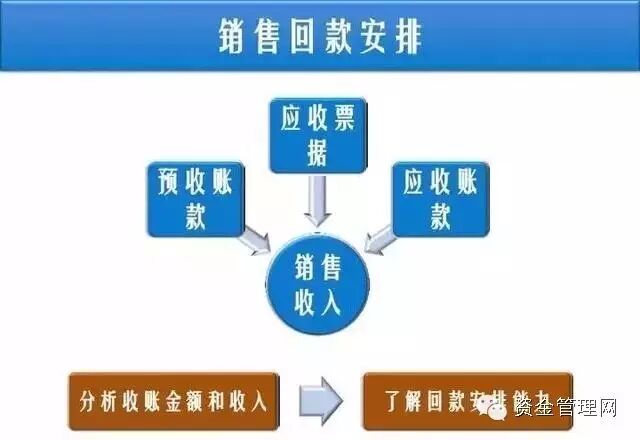 我们先看一下这个销售收入怎么来的,其实销售收入除了现金之外是由三个财务指标来共同推动的,一个是应收账款,一个是应收票据,还有一个是预收账款。我们可以分析我们收账金额和收入他的差距,比较应收账款、应收票据和预收账款以及他的销售收入,我们就能够比较出来我们对下游的回款安排能力怎么样。
