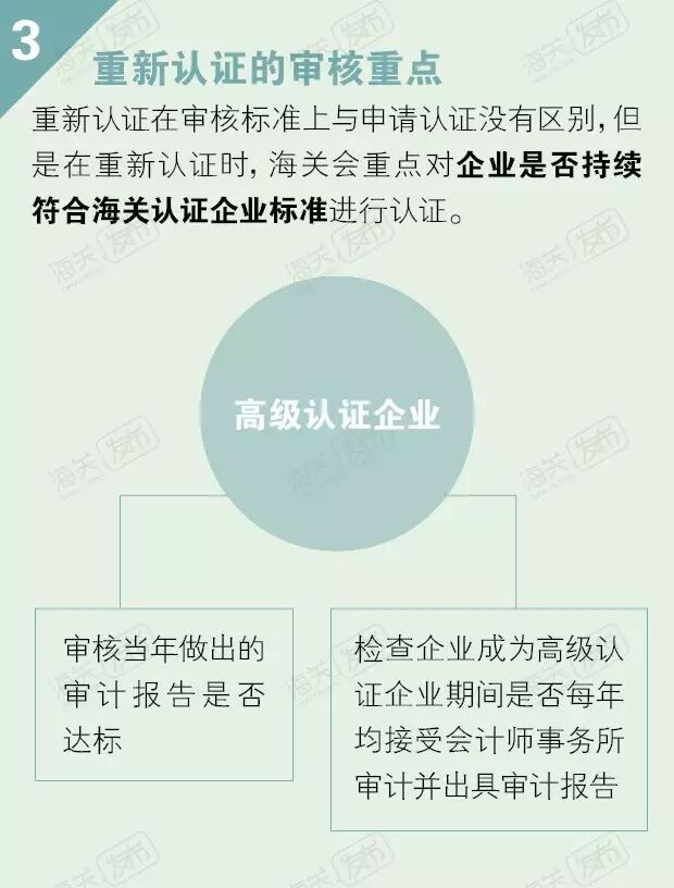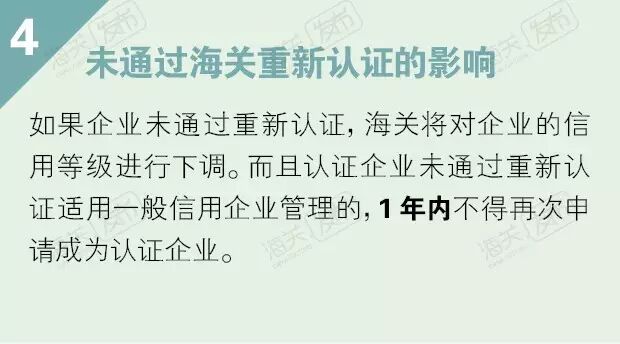 来源:海关发布(ID:haiguanfabu)背景:《海关企业信用管理暂行办法》第十五条规定:“海关对高级认证企业应当每3年重新认证一次,对一般认证企业