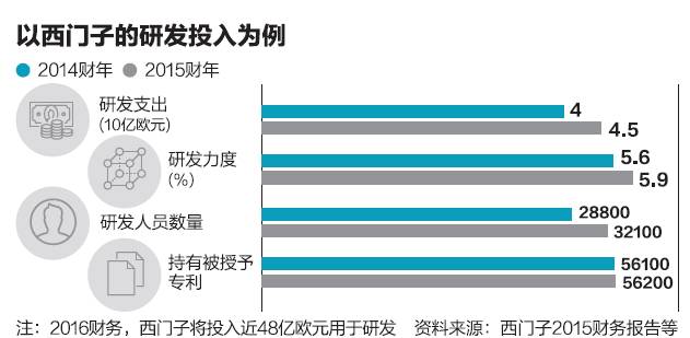以上述西门子为例,多年来,西门子不断加大其在华的研发力度,目前,中国已经发展成为西门子全球重要的研发基地。截至2015财年(2014年10月1日至2015 年9月30日),西门子在华拥有约4500名研发人员和工程师、20个研发中心和超过1万项有效专利及专利申请。
