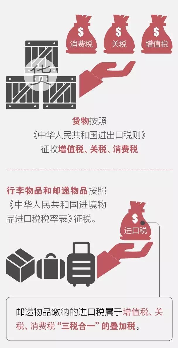 上述文字区分了货物、行李物品和邮递物品,相应地,货物、行李物品和邮递物品的征税依据也不一样: