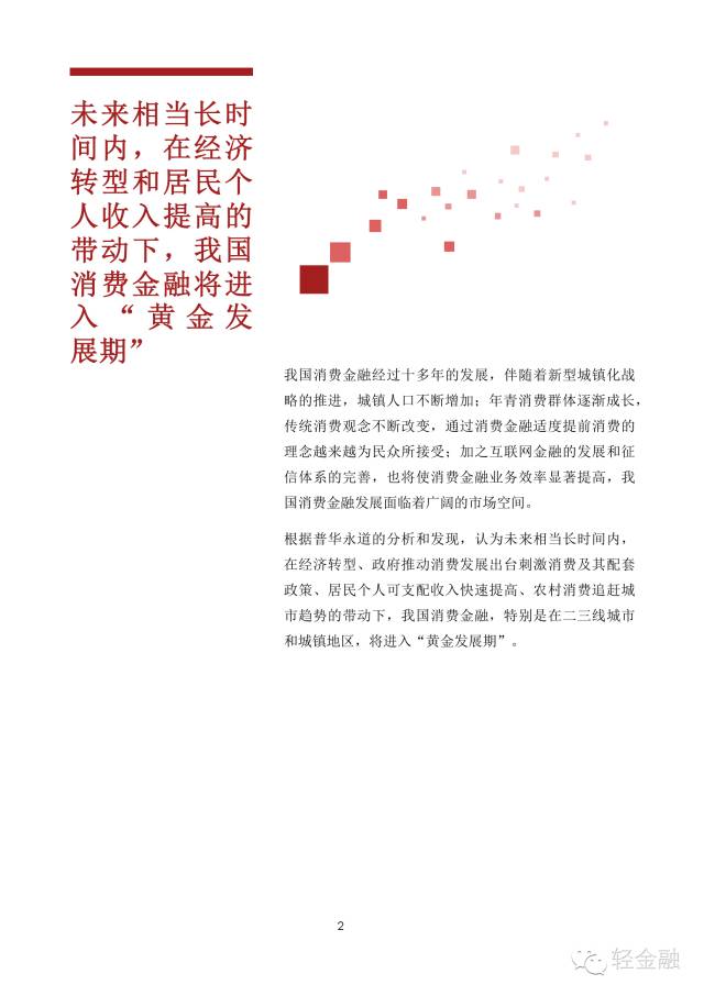 来源|普华永道 转自|轻金融(ID:Qjinrong)李克强总理在2016年两会《政府工作报告》中指出,要在全国开展消费金融公司试点,鼓励金融机构创新消费信