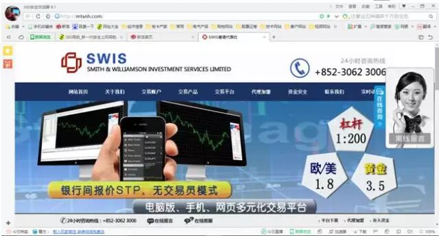 据香港恒丰环球集团介绍,SWIS平台(www.mtsnh.co,网站现已无法访问)属于英国五大投行之一、世界领先的金融服务机构史密斯(Smith & Williamson Investment Services Limited),香港恒丰环球集团是SWIS的钻石级代理商,通过该集团在SWIS平台进行外汇交易可以获得一定优惠。