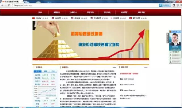 据香港恒丰环球集团官网(www.huqn.com,目前已经无法访问)介绍,该集团成立于 2012年5月2日,是一家致力于为财富投资者提供专业化、综合性理财服务的财富管理集团。