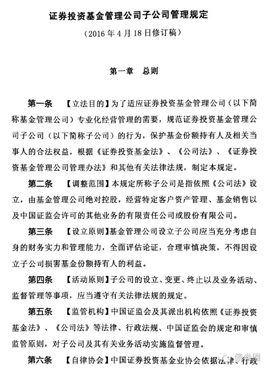 三、监管层日前还在内部形成了针对基金子公司的管理规定《修订稿》,对基金公司出资设立子公司的条件进行了重新确认,根据修订稿意见,基金公司设立子公司前成立须满2年,非货币公募基金规模不得低于200亿元人民币,基金管理公司净资产不低于6亿元人民币,最近三年未经过行政处罚等条件。