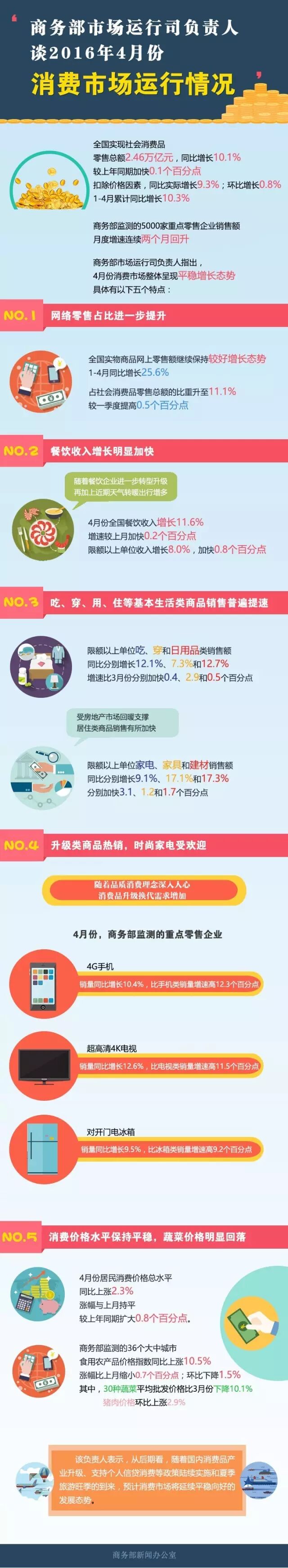来源:商务微新闻一图解析5月16日,商务部市场运行司负责人介绍了2016年4月份我国消费市场运行情况。