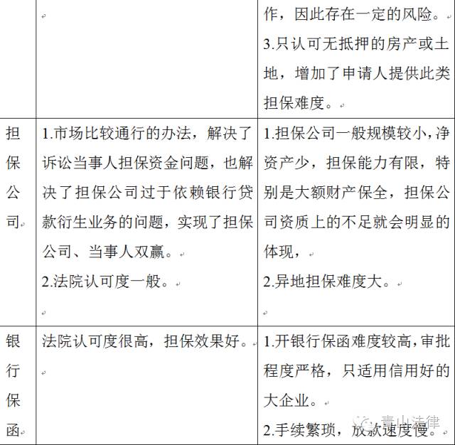 来源:青山法律诉讼财产保全担保方式比较在司法实践中,有些当事人好不容易打赢了官司,却因对方打“时间差”转移了财产,导致主张的权利一时