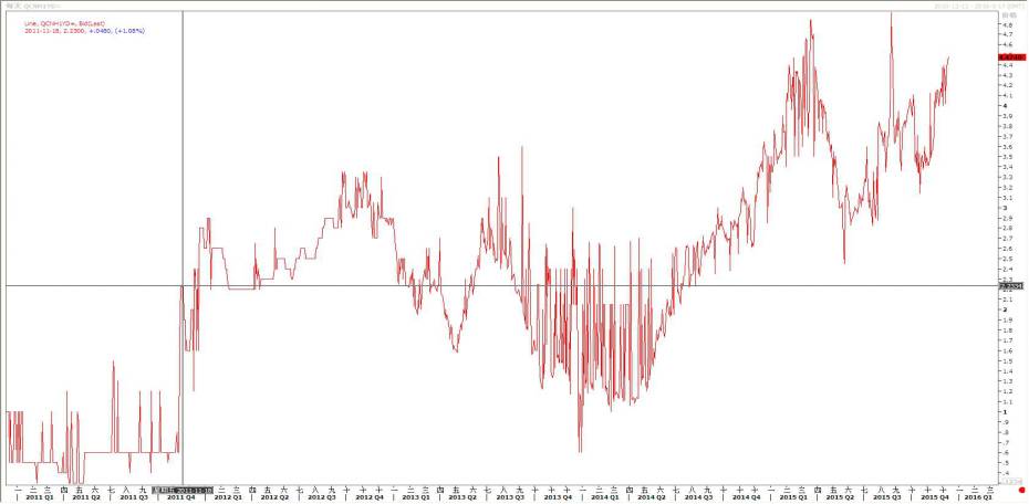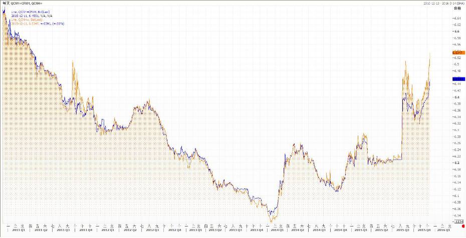 当时投机者将会叙做以下的交易:按1.28125%借入1年期美元,立刻按现价6.6310卖出美元买入CNH人民币,获得人民币663.10万元;同时买入远期美元100*(1+1.28125%)=101.2812万卖出远期CNH人民币,需要花费人民币666.08万;这个时候只要投机者能将即期人民币按超过0.45%的利率存出,其就可以开始获得无风险套利收益。至于当时投机者当期手里的CNH存款有以下几个去处:1、香港银行体系。叙做1年期定期存款,利率在0.5%-1%之间。2、购买点心债。当时点心债的利率水平较香港银行体系的定期存款利率会稍高一点。3、通过各种途径流入境内,变身为CNY享受境内高存款利率约3%。