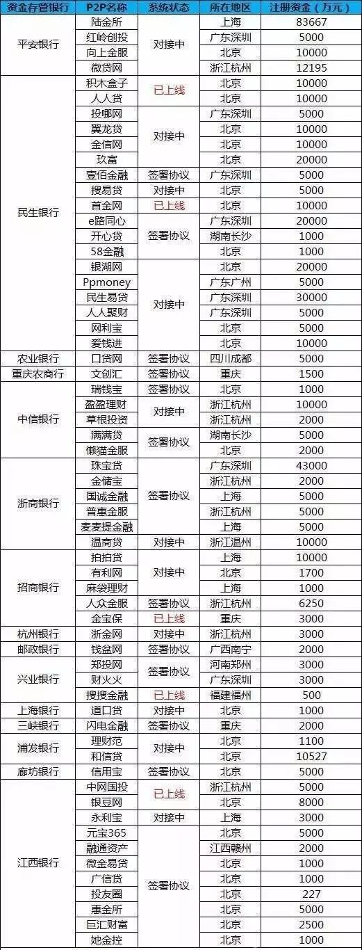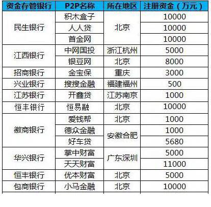 表2 P2P银行资金存管名单