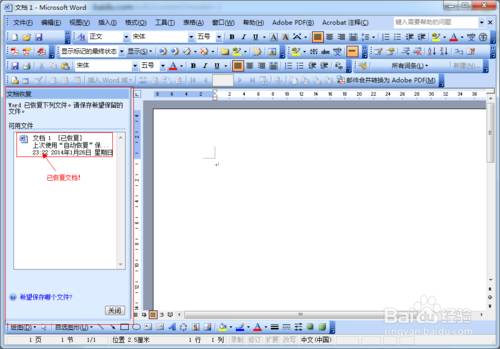 3、重新打开Word,在左侧看到文档恢复对话框,点击即可查看了。