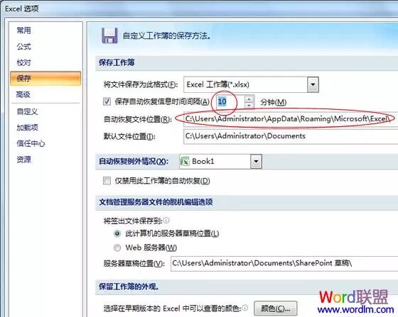 在选项”中选择左边的“保存”,在右边的“保存自动恢复信息时间间隔”框中输入间隔时间,建议越时间越短越好。