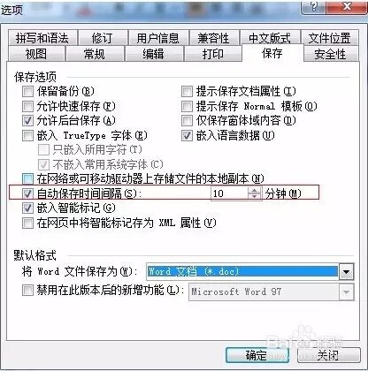 当然最好的方法就是在编辑前,设置Word自动保存功能,这样每隔几分钟自动保存一次,这样风险就小很多了。