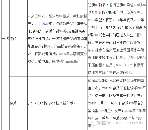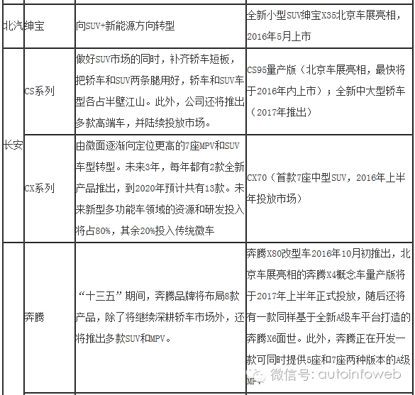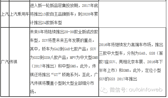 为实现“十三五”自主品牌销量目标,几大集团针对旗下自主品牌均提出了每年推出1~2款新车型的发展目标。通过陆续推出新款和改款产品,实现产品系列化、品牌家族化,以满足各级别人群差异化的消费需求。