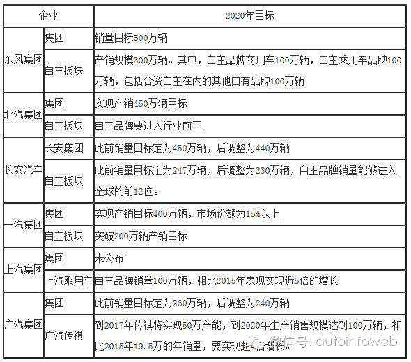 来源:汽车工业信息网核心提示 十三五期间,六大集团对公司旗下的自主品牌板块均抱有很大的期望,其销量在集团整体销量中均占据近50
