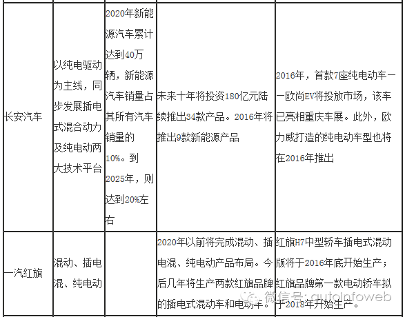 “十三五”期间,各大集团将新能源汽车发展均提上日程。广汽集团提出到2020年新能源车产销达到20万辆,其中广汽传祺为10万辆;东风集团提出2020年新能源汽车销量达到30万辆以上,市场占有率达到15%~18%;一汽集团提出2020年新能源汽车占全国15%的市场份额,成为中国新能源汽车领跑者,到2020年进入中国新能源汽车第一梯队;长安汽车提出在2020年新能源汽车累计达到40万辆,新能源汽车在所有销售的汽车中占比10%;北汽集团提出到2020年实现新能源汽车产销65万辆,其中北汽新能源产销50万辆目标。