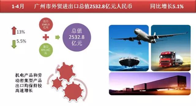 来源:广州海关12360(ID:gz12360)文/广州海关综合统计处 付朋、现场业务处 与非2016年1-4月,广州市外贸进出口总值2532.8亿元人民币,比上年同期(下