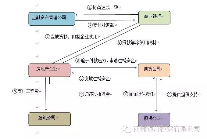 某房地产企业的房地产开发项目由于缺乏收尾资金即将停工,由于行业准入限制多方寻求融资未果,企业最终找到某金融资产管理公司。金融资产管理公司的传统业务为收购银行剥离的不良资产,一直做为买方存在,无法直接为企业发放贷款。为了给房地产企业项目收尾融资,资产管理公司通过与商业银行协商并达成协议:先由该商业银行向该房地产企业发放6000万元贷款,同时将该笔贷款做为履约保证金限制企业使用,两个月后再由资产管理公司支付等额资金将该笔贷款做为不良债权进行收购,收购完成后银行解除资金限制,企业方可自由支用贷款。最终通过“曲线融资”达到为企业融资的目的。