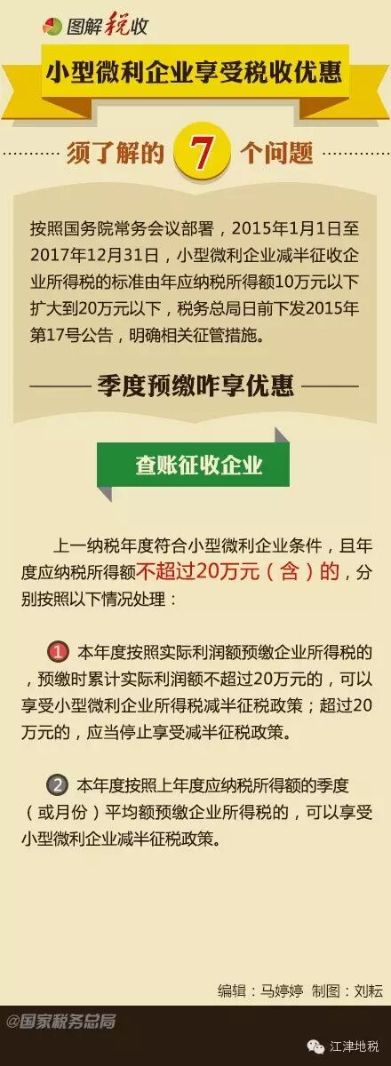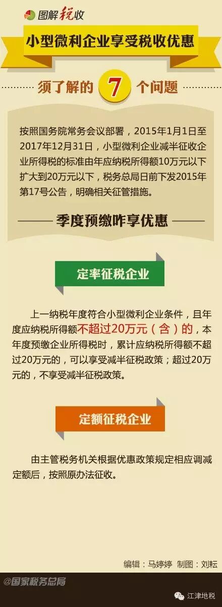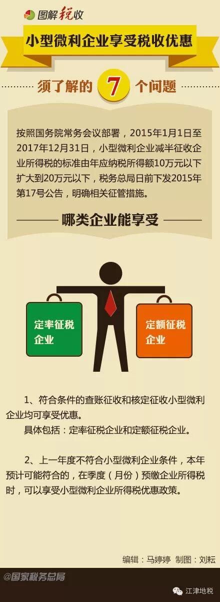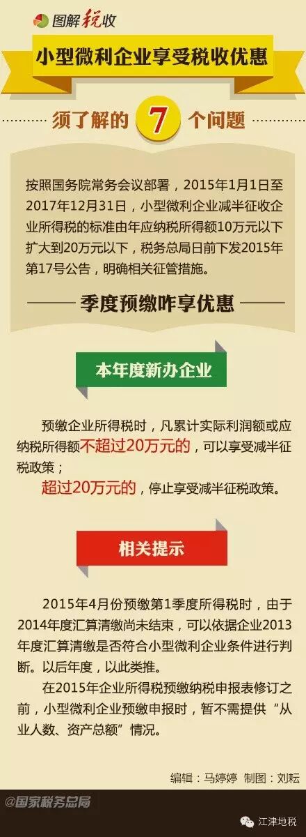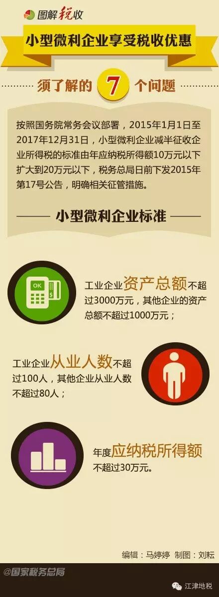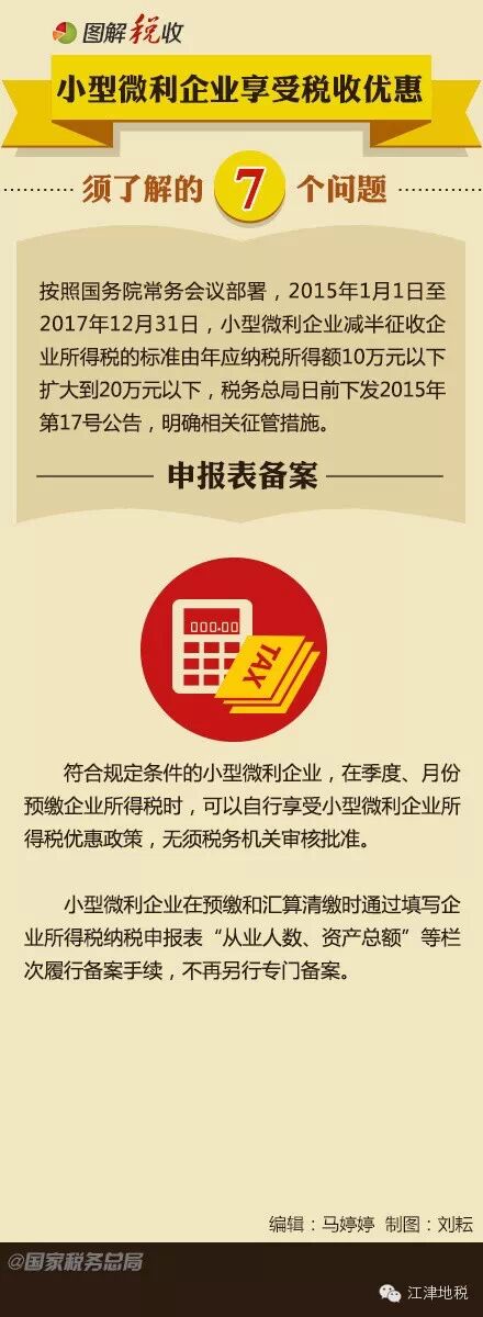 来源:国家税务总局、佛山税务 江津地税小微企业税收优惠包括两方面:货物与劳务税优惠(见表一)、企业所得税优惠(见表二)。小型微利企业所